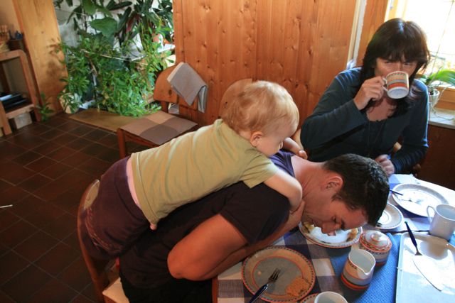 ... eigentlich stimmt das nicht mit dem Junggesellenabschied, denn der hätte vor vielen Jahren begangen werden dürfen. Karin hat dem Junggesellendasein ein Ende bereitet und wenn ich mich recht erinnere bereits im November 2003! Ja und die Krönung dieses Abschieds war ja doch Sophie. Wie die Zeit vergeht! Da gibt es dennoch Herrlichkeiten, die ohne Rücksicht auf geschilderte Umstände, unseren Lieblingssohn auf eine sehr harte Probe gestellt haben. Ich denke nur an die Kratzer und Napleiße!?