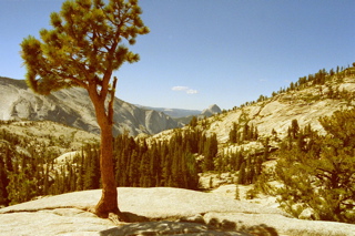 Das Frühstück(szimmer) im Hotel war umrahmt von alten Fotos der Schauspieler und Filme, die im Gebiet gedreht wurden, bzw. von Schauspielern, die hier übernachtet haben. Eine lange Fahrt erwartet uns, bis wir im Yosemite Nationalpark Halt machen dürfen. Wir sehen unterwegs eine riesengroße Herde von Rentieren auf dem Feld, nahe der Hwy. Die Regenspränger haben die durstigen Tiere angelockt - denken wir. Nach dem wüstigen Einerlei taucht immer mehr Grün und hohe Bäume auf. Nahe dem Salzsee Mono-Lake machen wir unser zweites Frühstück. Die Gaststätte bietet heiße braune gepolsterte Sitzecken. Die Bedienung scheint spanisch, oder mexikanisch oder indianisch zu sprechen. Die Landschaft dagegen wird europäisch. Die Berge höher, die Straßen kurvenreich. Ein See inmitten hoher Berglandschaft lädt uns ein. An einem gerade in den Himmel ragenden Felsen klettern Bergsteiger direkt vor unseren Augen in die Höhe. Der See ist klar. Während der Weiterfahrt durch den NP ähneln sich die Bilder, ein erster Blick in das Tal (Valley) wird uns geboten. Am westlichen Ausgang plus ca. 30 Meilen beziehen wir unser Hotel, besuchen den Pool und einen Mexikaner. Pa nimmt einen Platz an der Sonne und ein reichliches mexikanisches Gericht ein. Ihm drückt der Schweiß aus allen Poren, er schafft erstmals nicht, seine auserwählte Speise aufzuessen. Andreas trinkt Budweiser, er sagt er sei 28 Jahre, war ja nicht nötig, eher die Aufregung. (Im NY-Hotel in Las Vegas wurde ihm Wein verwehrt, da er seinen Ausweis nicht bei sich hatte!) Die mexikanischen Bean haben Pa´s Leib bearbeitet. Die Nacht war zu heiß.