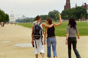 Frühstück mit Biskuit und Ahornsaft, Milch Wasser und Familienidylle auf der sonnigen Veranda. Gestärkt für den Ausflug nach D.C. Katrin hat unseren Rundgang mit Sehenswürdigkeiten gespickt: lincoln Memoral, Vietnam Veterans Memoral, entlang am Reflecting Pool zum Washington Monument, über die Madison Drive, rund um das Capitol, am Botanic Gardes (Andreas war drin und wir konnten nicht wegen eines Taschenmessers in der Fototasche), die Männer besuchten zwischendurch das nat. Air-Space-Museum, der Independance Avenue entlang zum Tidal Basin, hinauf zum Thomas Jefferson Memorial, zurück und vorbei am Franklin D. Roosevelt Memorial. Alles groß und weit, eine sehr angenehme Atmosphere, beeindruckend. Auf der Fahrt zur Innenstadt von Bethesda - vorbei an der National Kathedrale. In Bethesda sind wir beim Mexikaner eingekehrt. Geduldig haben wir nach der Anmeldung durch Katrin gewartet, dass unser Pieper leuchtet und anzeigt, wir sind an der Reihe und uns gehört der freigewordene Tisch. Nach 10 Minuten durften wir unter freiem Himmel Platz nehmen. Wasser wird ständig nachgeschenkt. Es gab Margarita und Cola. Zum Essen gehören kleine runde eierkuchenähnlich Gebilde, echte Sattmacher, die wir nicht brauchten. Es war reichlich, Salat, Bohnenbrei, Fleisch, Käseröllchen mit Chicken, Reis ... Zur Enttäuschung der Kellnerin wurden wir nicht zeitgleich mit dem Essen versorgt. Sie entschuldigte sich bei uns und wir brauchten das „nachgelieferte“ Essen nicht bezahlen. Während der kurzen Begehung der Innenstadt um 21 Uhr waren die Geschäfte geöffnet. Es war Sonntag, 21 Uhr! Auch der Buchladen war geöffnet. Überall Menschen. Treiben. Die lange schlaflose Zeit der Reise liegt noch in unseren Knochen. So sind wir wieder in unsere Betten gefallen. Mich plagt doch ein „schlechtes Gewissen“; wollten wir eigentlich so wenig wie möglich schlafen, um so viel wie nur möglich Zeit mit Katrin zu verbringen. Die Tage sind wie im Flug vorbei und dann guck ich ...