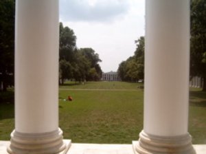 Mit Bus und Metro sind wir zum Haus von Catherine Kemp gefahren, um ihr Auto für die Fahrt nach Charlottesville zu entführen. Nach ca. 2,5 Stunden haben wir das idyllisch gelegene Bootshaus der Uni erreicht. Erdrückend heiß und wir haben keinen angetroffen. Es sind ja noch Semesterferien. Weiter geht's stadteinwärts in Richtung Campus. Mehr als schwer war die Parkplatzsuche. Dabei haben war das Haus, in dem Katrin wohnen wird, das Stadion, auf das sie von der Wohnung aus blicken wird und viele zur Uni gehörige Gebäude gesehen. Und dieser Campus. edel und gepflegt, ansehnliche herrschaftliche Architektur, viel Grün. Cool, dass Katrin eine solche Uni besuchen darf. Auf der Wiese, die durch die Gebäude eingerahmt wird, haben wir gesessen und gestaunt. In den kleinen Wohnungen rechts und links des historischen Hauptgebäudes dürfen nur wahre Ehrenstudenten leben. Die Einrichtung stammt wohl aus dem 19. Jahrhundert, der Kamin ist selbst zu beheizen. Toll. Die Altstadt haben wir nach einem recht langen Fußmarsch in Gluthitze erreicht. Auch sie ist sehenswert - die Häuser erinnern mich an alte Filme, sind noch sehr gut erhalten. Auch die große Eishalle ist im Hochsommer gefüllt. Ein schönes Städtchen, da lässt es sich studieren und leben. Nach unserer Rücktour sind wir beim Chinesen eingekehrt und haben anschließend im Haus der Gasteltern so gut wie möglich klar Schiff gemacht.