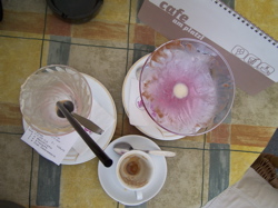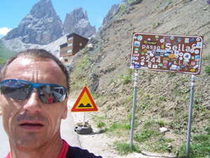 Ich sitze (live) im Cafe Mozart und beobachte das Stadtleben von Wolkenstein. Schreibe, lese, esse, trinke – während mein Bär mit dem Rad die Rundtour befährt. Kehren und Kehren, 5 Stunden lang. Da kommt mir in den Sinn, auch in die Höhe zu gelangen und ich entschließe mich kurzerhand mit dem Lift in 2800 m Höhe zu fahren. Da oben pustet der Wind kräftig. Ich lasse mich auf einen Sonnenstuhl fallen und schaue, da die Sonne zu grell ist, lieber in mich hinein ... Doch ohne Ankündigung schieben sich Wolken vor die Sonne und lassen mich frösteln. Das Limit ist erreicht, es könnte sein, dass ich im Dorf bereits von meinem Bär gesucht werde und so fahre ich hinab nach Wolkenstein. Kaum auszuhalten ists hier in der hitzigen Luft. Ja, da ist er ja. Heile und mit einem glücklichen Lächeln. Wir genießen noch einige Leckerbissen und ... Genau diese Passrunde und noch viel mehr haben mehrere 1000 Rennradfahrer am nächsten Tag bezwungen. Solche Persönlichkeiten, wie z.B. der Makkaronie-König Barilla ... u.v.a. waren dabei.