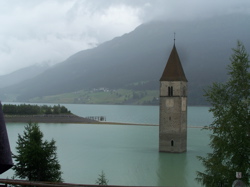 Heute nun soll der Stilfser Joch per Rad bezwungen werden. Natürlich ohne mich, nein das kann ich nicht. Doch auch die Wolken haben sich am frühen Morgen noch nicht verzogen. Grad so fertig geworden, um den Zug in Richtung Lara, zum nächstgelegenen Ort am Fuße des riesigen Passes zu schaffen. Drei Stunden Fahrt nach oben hat unser Radler eingeplant. Ich sitze hier und beobachte, wie Selbstdarsteller ihren Wohnwagen ans Auto spannen und den holländischen Camper ihren Wohnwagen von Innen zeigen. Das war wohl vorher ein Wohnmobil ... huhu. Mittlerweile hat sich die Sonne hervorgekämpft. Ich hab im Ort gebummelt, Espresso getrunken, in den Geschäften ohne Erfolg nach brauchbaren Mitbringsel oder Erfolgserlebnissen gesucht.