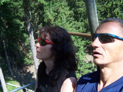 Frühstück, Baden und auf zur Bahn in Kalterer, die uns auf einen Stahlseil in die Höhe zog. Streckenweise (60 %) so steil, dass ein Sitzen und Stehen erschwert wurde. Von oben aus hat uns die Sicht über Berge und See, bis hin nach Bozen belohnt. Hier sind wir zur ... Hütte gewandert von einer saftig grünen Landschaft umgeben. Hier gab´s Buchweizentorte, die mich an Oma Else erinnerte. Auf dem Weg zurück haben wir einen älteren Herrn aus Tramin getroffen. Er verbringt mit seiner Frau und Enkelkindern den Sommer in seiner Hütte. Zu Beginn des Krieges war er Dolmetscher zwischen Deutschen und Italienern, wurde trotzdem noch zum Einsatz geschickt und geriet lange in Gefangenschaft. Er ist für ein Südtirol, das nicht an Italien gebunden ist. Auch die italienischen Fußballer sollten seiner Meinung nach am Abend verlieren (haben sie dann doch nicht, aber auch auf keinen Fall verdient gewonnen).