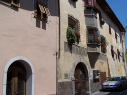 Gestärkt haben wir uns die Räder gesattelt, haben Straße, Steigungen, echte Berge bewältigt und die Dörfer in der Umgebung besichtigt. Die waren hier nicht sonderlich sehenswert. Angenehm war die Fahrt auf dem Radweg durch die Apfelhaine. Alles Grün waren Apfelbäume. Fahren mussten wir selbst und ohne Anstrengung komme auch ich nicht vorwärts. Zum Glück haben wir ein geschmackvolles Cafe gefunden, um uns (mich!) zu belohnen.