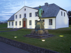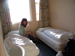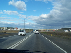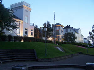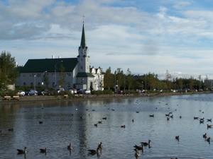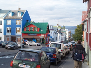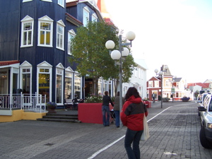 Wir übernehmen einen weißen Yaris und fahren nach Reykjavik. Das Hotel ist 2000 eröffnet und doch noch nicht fertig gestellt. War eine Unterkunft. Noch am Abend erkunden wir die Hauptstadt: hier gibt es alles; normal, modisch, verrückt, viel jung, 1000 Läden, disziplinierte Autofahrer, nicht abreisender Verkehr durch die Einkaufsstraße, die Kirche als Wahrzeichen schaut auf die Stadt und das Meer herab und wirkt auf dem ersten Blick gegenüber anderen Kirchen steril, die Häuser und ihre Dächer sind farbenfroh, Gerüste aus Holz nicht Vertrauen erweckend .... viel Treiben, die Bars, Cafes und Restaurants gefüllt, die Preise gepfeffert ... Wir haben in modernen Bistro mit gutem Essen zu moderaten Preisen unsere Magen gefüllt. Super Atmosphäre und Blick auf Trubel ... Die Stadt war bereits in idyllisches Abendlicht gehüllt. Im Hotel vorerst Stille. Die superweichen Betten standen ein Tischchen breit voneinander entfernt ... im Bad, ja wir hatten ein eigenes Bad!, war das Waschbecken so klein wie meine gespreizte Handfläche und der Duschkopf so groß wie ein Fußball. Die TV-Filme werden in englischer Sprache mit Untertiteln gesendet.