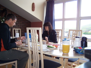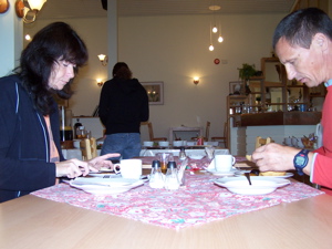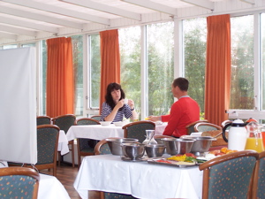 Frühstück in Maßen und am Nachbartisch ein japanisches Pärchen. Beide kannten sich bestens aus und bedienten sich am Kühl- und anderen Schränken. Sie zeigten uns den Weg.