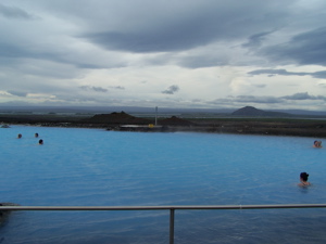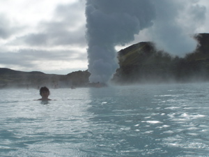 Den Weg zur Blauen Lagune haben wir selbst gefunden. Herrlich bei 38 Grad C zu baden und verschiedene Dampffontänen beobachten, die in unmittelbarer Nähe für neues warmes heilendes Wasser sorgten. Wir haben mir mineralhaltigen Schlamm auf die Haut aufgetragen und sicher habe ich mich wie ein Gespenst im blauen Nass bewegt ... Hauptsache es hilft. Nach mehr als zwei Stunden hatten wir genug aufgetankt und ich habe den einst übersichtlichen Frauenumkleidenraum nicht wieder erkannt. Mindestens zwei Busse Frauen aus aller Herren Länder und jeglichen Alters waren eingetroffen und sorgten für blankes Chaos. Es war schön, aber nun Zeit zum Gehen.