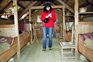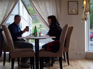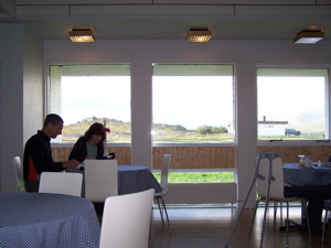 Frühstück haben wir im Restaurant eingenommen. Hier waren viele Bilder als Zeitzeugen dieses Bauernhofes sowie einige Zitate des auf Hali geborenen Schriftstellers Pordergur Purdurson (deutsch geschrieben) ausgestellt. Er ist als Jugendlicher über Nacht aufgebrochen, hat sich Mut angetrunken (angeschwemmtes Fass Alkohol), in Reykjavik gearbeitet, wollte studieren, hat Gymnasien besucht, lebte Anfangs ärmlich, hat Gedichte geschrieben und veröffentlicht, Esperado gelernt und unterrichtet, hat Yoga betrieben und darüber geschrieben, war Sozialist ... Er ist mit „Briefe für Sara“ in Island berühmt geworden und hat viele andere Bücher geschrieben. Über sein Leben und das Leben auf Hali berichtet die neue Ausstellung neben dem Restaurant. Wir durften noch vor ihrer Eröffnung in die heilligen Hallen. Sehr interessant.