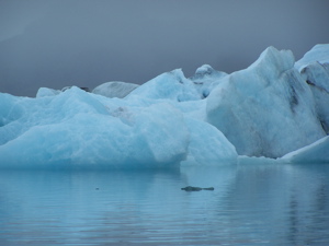 Frühstück gibt’s im Restaurant, das Haus hat an seiner Rückfront zur Straße hin viele Buchrücken zur Zierde. Find ich gut, dass hier auch eine Bibliothek drin ist (hab ich gedacht). Wir sind aber sofort zur Gletscherlagune Jökulsarlon weiter gefahren. Ich bin sprachlos, kann nicht beschreiben, wie grandios das aussieht. Woher kommt das Gletscherblau? Das leuchtet traumhaft. Robben schwimmen zwischen den Gletscherschollen und tauchen wieder ab in den bis zu 160 m tiefen See. Gletscherschollen stoßen aneinander, dadurch lösen sich tobend kleinere Stücke und treiben hinaus ins Meer. Toll. Toll. Toll. Auch den zweiten Gletschersee haben wir gefunden. Hier ging früher die Ringstraße 1 entlang bis ein Unglück die Brücken zerstörte. Dieser See ist viel kleiner und sehr ruhig. Die Gletscherzunge ist nicht so stark abgerutscht. Abendbrot gleich Selbstverpflegung haben wir im Zimmer eingenommen. Ein Gastpärchen hat das Bad vernebelt.