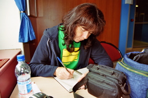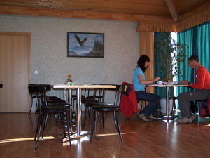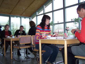 In einem kleinen Cafe haben wir sehr zarte Torte genossen und daneben Bank und Post entdeckt. Endlich sind wir unsere Postkarten – die Grüße an die Daheimgebliebenen losgeworden. Zurzeit genießen wir unsere kleine Wohnung. Wir haben sogar drei Sessel, eine Küche, ein Bett zusätzlich und mehrere Tische im Zimmer. Ein Glastisch wird von Notenbüchern von Mozart und Bach sowie von Geige und Geigenstock gehalten. Morgen gibt es um 8 Uhr Frühstück und wir sind gespannt auf den nächsten Tag.