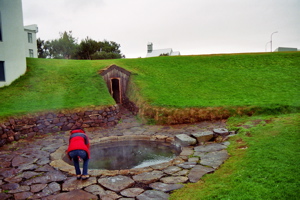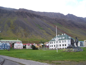 Die Nacht war gut und das Frühstück lustig. Ja, viele Mitbürger reisen mit gleichem Anbieter und so treffen wir uns in der einen oder anderen Herberge. So auch eine notorische Meckerdame, der das Frühstück und das Gasthauszimmer missfiel. Das Frühstück war zwar nicht unendlich, weil ev. die Mitmenschen vor uns zu oft zulangten, aber sehr gut. Der Wirtsherr musste auch ev. bei Nachbars oder Esso Sauermilchnachschub holen. Doch das ist nichts Schlechtes. Die beiden Wirtsleute betreuen Laden, Herberge und Gaststätte allein. Das Leben will auch hier finanziert sein und ich finde, das war bislang die beste Unterkunft. Der Reiseveranstalter hat uns einen zusätzlichen Tag hier gebucht und so waren wir in Isafjördur... und in Budir, einem Museumsfischerdorf mit Häuschen im Erdreich wie eben vor vielen hundert Jahren. Hier im Ort befanden sich farbenfrohe Häuser, Konditoreien, eine Bibliothek im Kulturhaus – wunderschön. Heute regnete es öfter, die Sonne wird nicht immer durch die Wolken gelassen. Auch der Wind bläst heute stärker. Doch ein Bad im Hot Pot ließen wir uns nicht nehmen. Herrlich. In dem 40 Grad C heißen Bad ist es kaum zum aushalten. Trotz der 10 Grad C Außentemperatur alles sehr angenehm. Am Pott selbst steht der Kaffee gratis und dient unter anderem als stille Einladung für einen Plausch. So haben wir schnell erfahren, dass Magdeburg in Island keine unbekannte Stadt ist (Dank dem ehemaligen erfolgreichen Handballtrainer Islason). Das Bad hatte einen Pool zum Schwimmen, zwei kleine und einen großen Pott und war mit der Turnhalle am Schulgebäude angeschlossen. Auch in der Turnhalle waren einige Kinder und haben Handball o.ä. gespielt, obwohl (es war 17 Uhr) die Schulzeit zu Ende war.