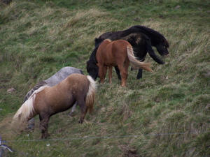 Das Frühstück war einfach, gut und hat gesättigt. Die Saison ist vorbei und so waren mit uns nur 5 Gäste hier. Vor dem Trip in die Landschaft haben wir kurz das Einkaufsparadies „Kringlan“ gesichtet. Grund war die Suche nach Nadel und Faden für die dem Mann im Schritt gerissene Hose ... weil einziges mitgeführtes Beinkleid ... nach ungewollter Ehrenrunde, die Geschäfte machen später auf, haben wir die Straße Nummer 1 eingenommen. Da kam sie - die Natur ohne Bäume, aus Fels, Lava, Wiese, Schafe und Pferden. Geographie pur. Wir sind den Fjord umfahren, Regen hat die Sicht teilweise versperrt, das Wetter wechselt im Wind. Beim Schafetreffen und wir haben wahrlich viele gesehen, war mindestens ein schwarzes Schaf dabei .. sicher für das Strickmuster. Interessant und neu für uns sind die zweifarbigen braunbeigen Schafe.
