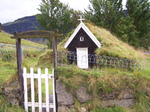 An einem hohen Berg wird das Wasser zweier Wasserfälle vom Wind himmelwärts gedrückt. Einfach so, kerzengerade nach oben. Genau darunter liegt ein Gehöft mit den in die Erde gebauten Häuschen und einer aus dem 15. Jahrhundert bestehenden kleinen Kirche. Die Felswand darüber war einmal die Steilküste ... vor der Zeit geologischer Veränderungen, da befand sich das Meer über der Wiese, auf der wir gerade standen. Bis nach Kirkjubaejarklaustur hat uns das kräftige Regengebiet begleitet. Hier sind wir wegen des peitschenden Regens und der Orkanböen kaum vom Parkplatz in die Tankstelle gekommen. Unser Dinner heute: Fish and Ships.