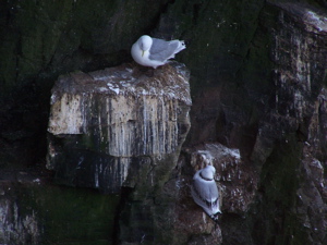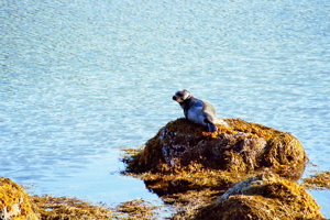 Ach ja, auf dem Weg zum Vogelfelsen saß eine Robbe auf einem Stein am Wasser und hat zu uns aufgeblickt. Das war noch ein Heuler und es kann sein, dass es seine Familie suchte.