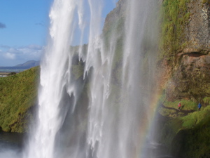 Der Skogarfoss ließ in seiner Gischt Regenbogen tanzen, der Wasserfall war sehr schön anzusehen. Hier sind über Direktfahrten aus der Hauptstadt gefüllte Reisebusse eingetroffen. Ein gewöhnungsbedürftiges Bild, denn bisher waren wir auf unserer Expedition fast allein. Umlaufen haben wir den Seljalandsfoss und das hat Spaß gemacht. Jeder Standort lässt diesen Wasserfall anders leuchten.