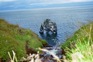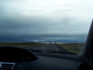 Wir verlassen die Westfjorde. Unser Weg ist in Zickzacklinie auf der Landkarte zu verfolgen. Der Nebel legt sich auf die Fjorde und versteckt all die Schönheiten. In regelmäßigen Abständen stehen Schafe, meist zu dritt, an der Straße ... die Neck der Autofahrer. Der Regen macht ihre Wolle wahrscheinlich für sie unerträglich schwer. Nach einiger Zeit „Glück“ (befestigte Wege) fahren wir auf eine so genannte „gelbe“, d.h. unbefestigte Straße, die durch den Regen massig befützt ist und unser weißes Auto in kurzer Zeit „umspritzt“. Zwischendurch ist ein riesiger LKW in den Straßengraben abgerutscht, die Ränder werden vom Regen aufgeweicht. Jeder Gegenverkehr, der GottseiDank selten ist, stellt eine Mutprobe dar. Entlang der Küste in Richtung Süden tobt ein Sturm. Wolken und Sonne kämpfen miteinander. Treibholz aus Sibirien (wie kommt das denn hier her?) liegt am Strand. Mitunter war es möglich, direkt vom Auto aus ein Foto zu schießen. Fenster auf und schnapp. Doch hier war Gegenverkehr mit Dreckwasserfontäne spontan herangekommen und Wieland blieb nur ein blitzschnelles Fenster zu ... und die braune Brühe lief der Scheibe hinunter. Sind in Bru´, der Verbindungsstelle zur Ringstraße mit Windstärke 16. Ich glaube, der Lack geht ab, das Auto schaukelt. Wieland braucht mehr Kraft denn je zum Stehen und Laufen. Dann haben wir unsere neue Unterkunft gesucht. In der Wildnis an einer Straßengabelung (völlig unbefestigt) stand einsam und verlassen ein Hotel. Ein Hotel mitten auf einer unbewohnten Halbinsel. Mitten im Orkan. Das Hotel selbst sieht unbewohnt aus. Doch da, die Tür ist offen und an der Rezeption steht der Hotelier aus Reykjavik. Wir bekommen unser Zimmer und die Duschräume zugewiesen. Der Tag ist noch nicht zu Ende und wir sollten noch etwas unternehmen ... Wir fuhren zur nächsten (laut Plan sehenswerten) Stadt. Doch diese Stadt ist ein sehenswerter Aussichtspunkt. Pech. Auch in dem etwas entfernten Hvammstangi gab es nur eine Shell-Tankstelle mit Fish und Ships. Ich war heilfroh, meinen Magen füllen zu können. Die anschließende Autowäsche mit Quellwasser war nötig, Wielands Hose nass und das Auto nach einigen Metern Rückfahrt genau so schmutzig. Im Hotel zurück haben wir entdeckt, dass ein Highlight in unmittelbarer Nähe auf uns wartete. Und los. Langsam wurde die Nacht eingeläutet, doch wir konnten das Ungeheuer im Wasser noch erkennen. Die Fahrt hatte sich gelohnt. Wieland grübelte laut und meinte, dass er den einen Gast kennt, aber nicht weiß, woher. Er grübelt eine Stunde lang ... und wie aus einer Pistole geschossen ... hatte er seinen Autolackierer aus Felgeleben ausgemacht. Die gesamte Familie (Vater, Mutter und zwei Söhne) war im gleichen Hotel untergebracht. Geschlafen haben wir im überheizten Zimmer, da der Sturm nicht zuließ, ein Fenster zu öffnen. Zum Frühstück war ein Pärchen bereits am Tisch, die Frau mit Gipsbein und Krücken. Sie ist auf den rutschigen Steinen hinter einem Wasserfall ausgerutscht. Die Familie aus Felgeleben hat sich nett mit uns unterhalten. So klein ist die Welt. Vom Hotelier haben wir uns bis in einer Woche in der Hauptstadt verabschiedet. Er hat uns erzählt, dass er das Hotel hier für dieses Jahr schließen wird ...