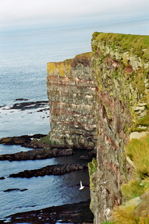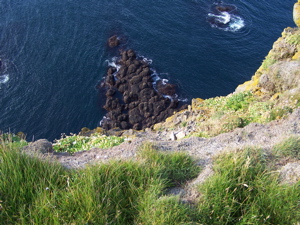 Das Frühstück war gut und mit Aussicht. Unsere Spannung war schon auf dem Höhepunkt geladen. Wollten wir doch heute Lundis, Papageientaucher, beobachten. Dazu sind wir über einen Schotterweg, der nicht enden wollte und über Mondgestein zum westlichsten Punkt Islands und Europas führte, gefahren. Die Landschaft zum Latrabjarg und der Wechsel zwischen Land und Meer waren herrlich anzusehen ... und wir sind den Vogelfelsen aufgestiegen ... und zum nächsten ... und zum nächsten gelaufen ... Ein wunderbarer Ausblick über das Meer ... und rege Mövenfamilien zwischen den Felsen ... aber: keine Lundis! Nicht einmal ein zurückgelassener Papageientaucher. Schade.
