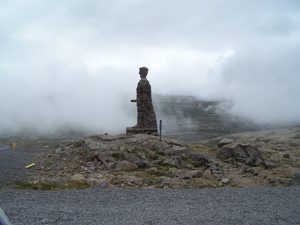 Die Stadt Olafsvik haben wir über eine unbefestigte Bergstraße bei dichtem Nebel erreicht. Hier ist an der Stelle (mit Blick zum Meer) ein Denkmal errichtet, wo die erste Kirche des Ortes überhaupt stand, Gräber erinnern an die Pastoren ... Olafsvik hat farbenfrohe Häuser, Hafen Fisch, Pizzeria, Thermalbad ... und wir haben in der Tankstelle Fish and Ships and Cola für 1045 IK gegessen.