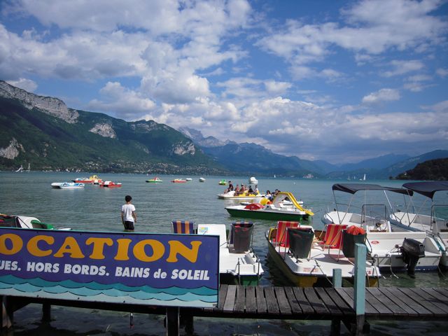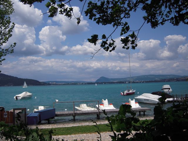 Obwohl wir zeitig die Grenze nach Frankreich erreicht hatten, erschienen die noch zurückzulegenden Kilometer unendlich. Das Navi hatte regelmäßig zu kämpfen, sich wieder auf die doch andere Route der eigenwilligen Besitzer einzustellen. Wir versuchten angestrengt ab Besancon keine Autobahn zu befahren. Eine enorme Herausforderung, da die Region sehr bergig und damit sehr kurvenreich ist. Ich könnte unendlich viele nicht zu einer Anreise nötigen Details berichten, aber was soll´s, wir haben in den Abendstunden Annecy erreicht und waren glücklich über den schönen Anblick des See´s, der Stadt und Umgebung. Die Menschen hier waren noch sehr geschäftig und haben sich Plätzchen für ein Abendessen gesucht. Eine wunderschöne Braut mit einem märchenhaft schönen Kleid haben wir gesehen – Schade aber ohne Foto.