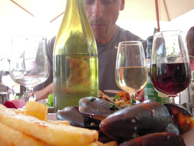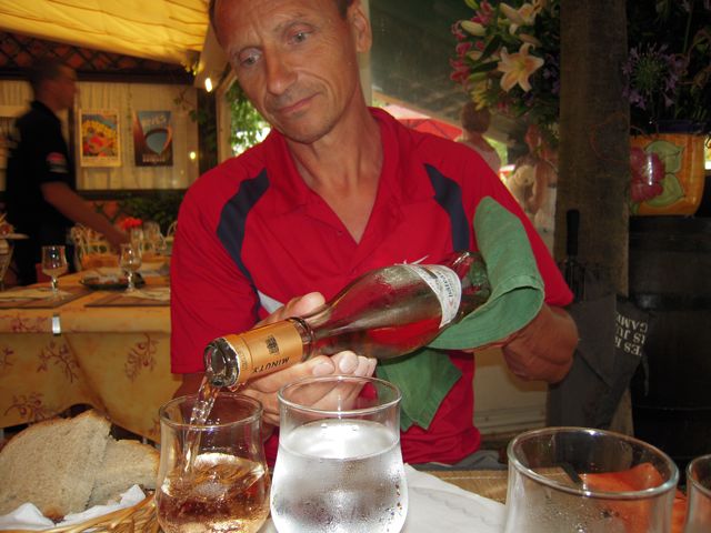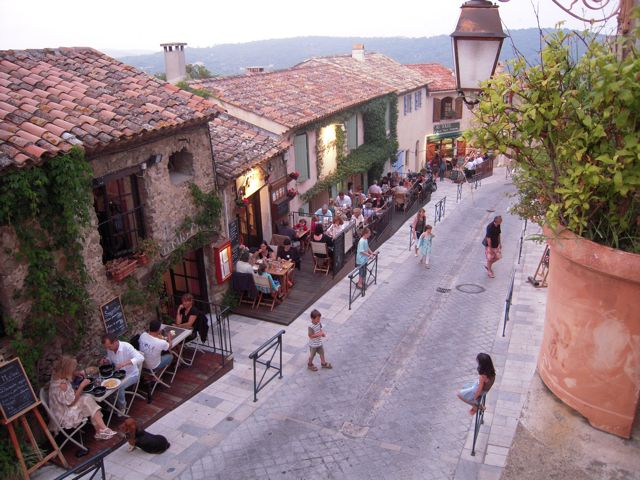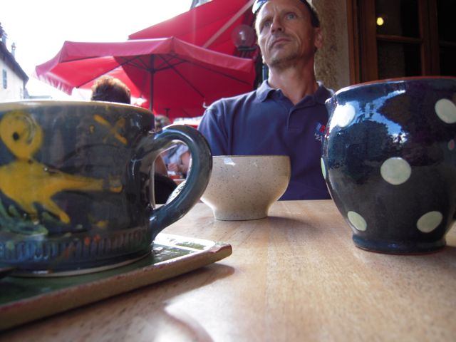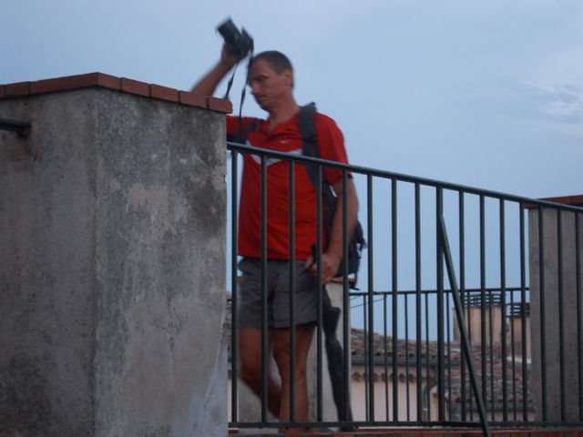 Der Tag begann wie jeder andere und nach dem Frühstück packt Wieland seinen Rennesel und fuhr von Tannen. Er ward soooooo lange nicht gesehen, dass ich mir hier auf der Seite der Welt Gedanken der Hilfe und des Verlusts machte, während er vom Weg abkam, ihm Trinken und die Kräfte ausgingen ... Für seinen vermeintlich kurzen Ritt braucht er weder Essen, Orientierungsmittel, Geld, noch Handy. Als er dann doch um halb 5 das Mobilheim erreichte, war Frau sooooo froh und Mann soooooooooooooooooo eingefallen. Nach einer Trinkkur mit viel Süss fuhren die Geister wieder in die Reckenglieder und so konnte er gut die verlorenen mehr als 1000 Kalorien beim Abendmahl in Gassin wieder ausgleichen. Das war herrschaftlich .... Nach einem kurzem Gewitter war die Luft leicht erfrischt und die Temperatur fiel kurz auf unter 30 Grad C. Vom Restaurant aus konnten wir die Berge verschleiert sehen, sie atmeten auf. Auf dem Rückweg über Ramatuelle konnten wir eine traumhafte Aussicht auf die Landschaft genießen, besuchten den schönen Abendmarkt, der bis Mitternacht in Gange war. Hier zeigten Künstler und Handwerker ihre Schätze. Es gab auch Wein, Öle, Nougat ... sooo viel Schönes.