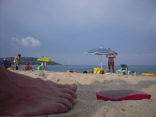 In St. Tropez war es auch heute sehr heiß. Beeindruckt haben mich die vielen schönen Gardinen, die in Textilläden angeboten wurden und die vom Schuster angefertigten Sandalen. Am Abend wieder Strand und Wasser.