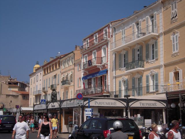 Mit dem Rad nach St. Tropez in brüllender Hitze. Im Ort war Markt, eng gedrängt gab es alles zu sehen, was das Herz begehrt, Obst, Gemüse, Öle, Oliven, Stoffe, Textilien, Taschen, Kleidung, Antiquitäten, Kashmir, Schuhe .... Unser Herz hat nicht angeschlagen, allerdings war es sehr interessant, den verschiedensten „Gestalten“ zuzusehen. Jung und alt, aufsteigend und abgefallen, Möchtegern, Divas ... Vielleicht auch BB. Die nächste Visite gehörte dem Hafen und den riesigen Schiffen, die aus aller Herren Länder mit den Schönen und Reichen an Bord angereist sind. Von gebührender Entfernung sehen wir ein Pärchen, das einer Einladung einer Dame gefolgt ist und ein Schiff besteigen. Keine sichtbaren Zusammenhänge erkennbar. Dann liegen Schiffe gegenüber den Restaurants und Bars. Hier ist Personal zu sehen. Einige Kinder haben sich an Bord versammelt. Wir können die Prinzessin nicht ausmachen. Als sie das Schiff verlassen haben, werden Scheiben, Außenwände, Klinken und Reeling wieder blank geputzt. Im Cafe ist die Rechnung für eine Kleinigkeit vorzüglich. Durch die Gassen ziehend haben wir ein Geschäft nach dem anderen inspiziert. Ich hätte manches leerkaufen können. Schade, dass der F-Hahn nicht aufging. Die Fahrt mit dem Rad war zurück hitzig, doch irgendwie habe auch ich das geschafft.