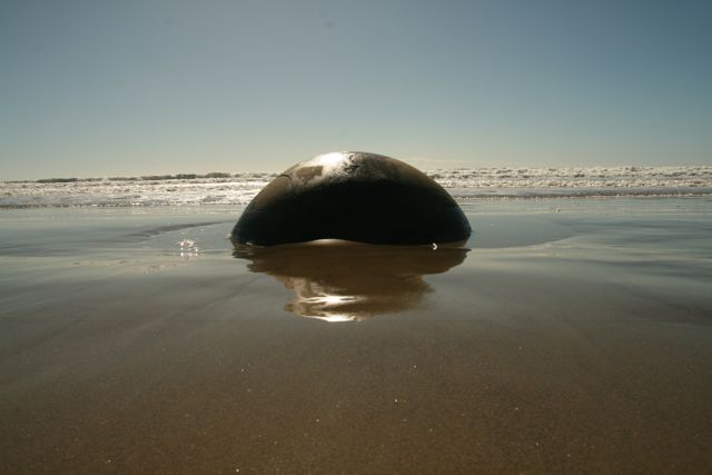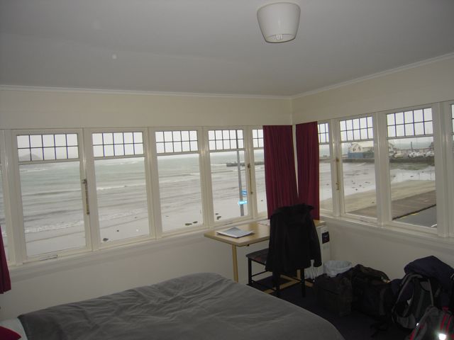 Plimmerton, ein kleiner Vorort von Wellington, erweist sich als sehr idyllisch. Unsere Backpaper Lodge liegt direkt an der Tasmanischen See, das Zimmer hat zwei große Fensterfronten und bietet somit himmlischen Ausblick. Die Host fragt uns aus ... woher und wohin ... und erzählt von dem Erdbeben in der Nacht mit 5 auf der RichterSkala und alles hätte gewackelt. Zum Abend sind wir nach unserem Walkakt am Meer beim Inder eingekehrt. Kiwihot hört sich heiß an und ist tränig scharf. Scharfer Fisch und Brot und das war dann soooooo scharf, dass Wieland die Tränen liefen. Mein ChickenMango war mediumscharf mit Reis und super. Vom Bett aus hatten wir einen guten Überblick und festgestellt, dass hier unterhalb des Äquators die Sonne genau entgegengesetzt kreist und untergeht.