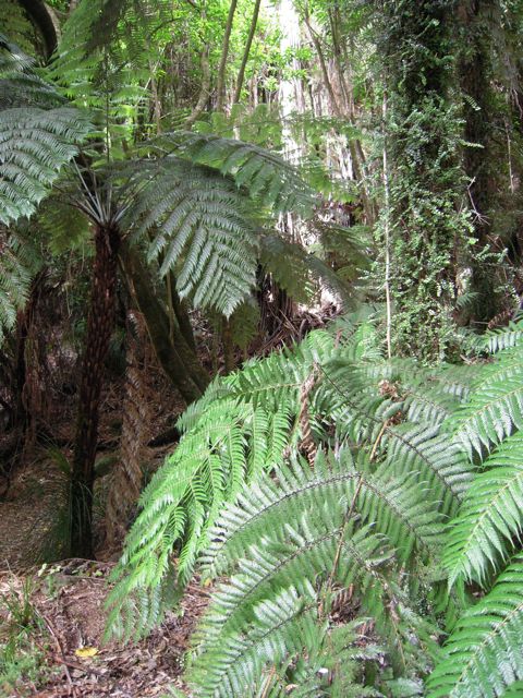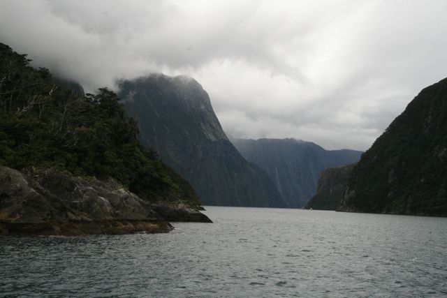 Das sind 120 km und wir reisen sehr früh an. Je näher wir dem Meer kommen, um so idyllischer und feuchter wurde die Gegend. Hier fällt der meiste Niederschlag überhaupt. Mit einem Schiff sind wir die 40 km Sound in Richtung Tasmanische See gefahren. Ein Traum, die steilen Sounds sind mit Regenwald bewachsen. Baumgroße Farne ragen wie riesige Palmen aus dem Busch. Diese werden unterbrochen von Wasserfällen, unter die der Kapitän zielgerichtet das Schiff steuert und so die Neugierigen ins Nass eintaucht. Robben liegen träge auf den Felsen, sie lassen sich nicht stören, sind die Schiffe sicher gewöhnt.