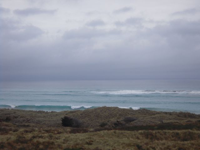 Eine der weitesten Reisen steht bevor und wir entscheiden uns dennoch für den komplizierten und weiteren Weg. Er soll landschaftlich schöner sein. Außerdem können wir so Goldgräberstädtchen besichtigen. Nun gut, ganz so goldgräberisch wurde es nicht. Die Landschaft war allerdings kaum zu toppen. Wir gelangen zu den Caitlins. Das ist das Gebiet im äußersten Süden und hier halten die Farmer ihre vielen Schafe ... Hier haben wir Strände gefunden, so goldig so herrlich, wie wir sie vordem noch nicht gesehen haben. In einer Bucht haben sich nach abermillionen Jahren die Bäume versteinert und da gerade Ebbe war, konnten wir die Stämme noch sehen, Darauf watschelte ein Pinguin einsam seine Wege und wir und alle Touristen waren entzückt und zückten die Fotoapparate.
