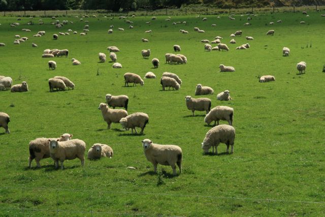 Wieder durchfahren wir eine herrliche Landschaft, wieder stehen hunderte Schafe auf den Weiden. Nostalgische Kühe dazu.