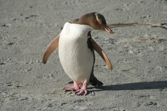 Am Nachmittag stellten wir uns vorm Hotel auf und warteten auf unsere Exkursion zur Halbinsel Ortago. Ein junger Mann aus Ohio und Pärchen aus Australien ... und China saßen mit uns im Kleinbus. Wir sahen Pinguine, Robben, Seelöwen, Albatrosse ... Vögel, die bei Ebbe Würmer mit ihrem langen Schnabel aus dem Watt picken. Die Albatrosse brüten gerade und wir konnten die größten Seevögel der Welt über uns kreisen sehen. Pinguine, richtiger: Gelbaugenpinguine wackeln am Strand und laufen auf die Wiese und kommen den Schafen sehr nah, immer wieder rutschen weitere Pinguine aus dem Wasser, richten sich auf und kommen auf uns zu .... Ach ja, und dann sehen wir in kleinen Erdhöhlen die allerkleinsten Pinguine der Welt. Sie leuchten blau und gucken neugierig aus ihrem Verschlag. Über einige Hindernisse hinweg, beobachten wir Seelöwen zu Hauf, Babys, die hier 9 Monate in Obhut aufwachsen, da wo es keine natürlichen Feinde gibt. Sie spielen und tummeln in den kleinen Pfützen, necken sich und verstecken sich hinter ihren Eltern. Inmitten dieses Trubels steht ein Pinguin erstarrt und rührt sich die gesamte Zeit, die wir beobachten, nicht von der Stelle.