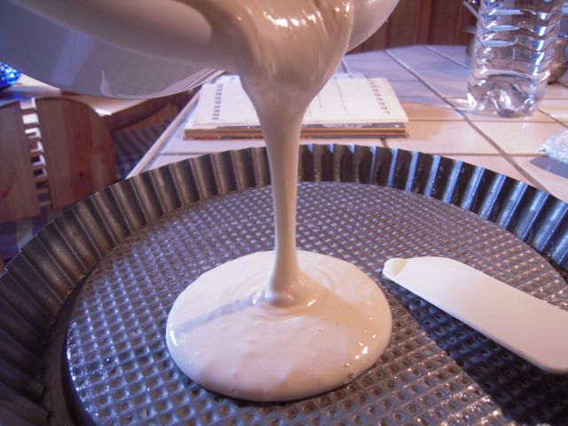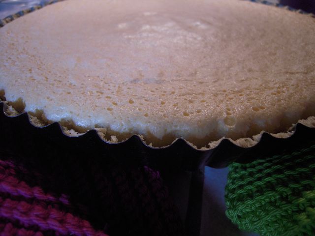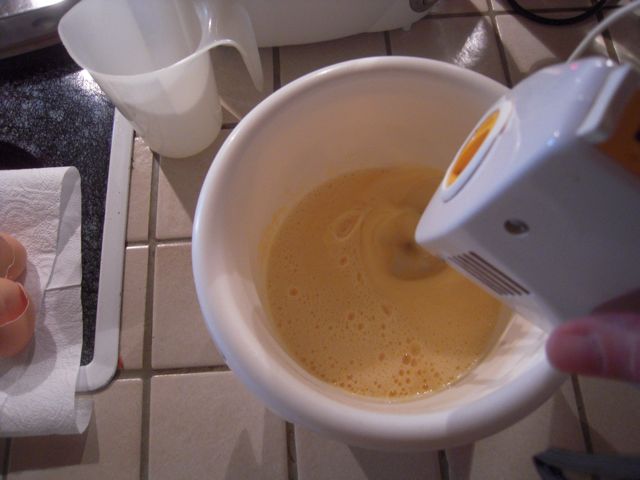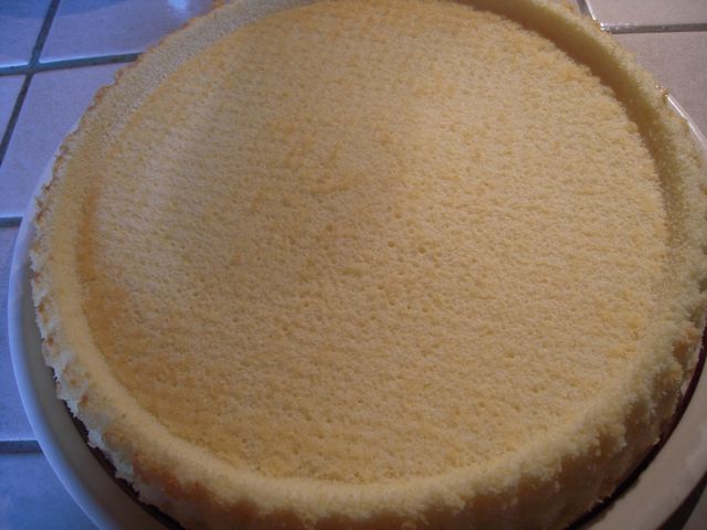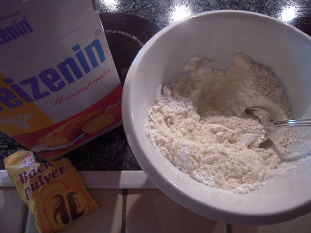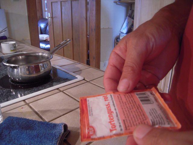 So rühre ich 125 g Zucker und 2 Eier, bis die Masse Blasen schlägt. 100 g Mehl, 2 TL Backpulver und 30 g Stärkmehl gemischt füge ich abwechselnd mit insgesamt 3 EL lauwarmen Wasser hinzu, bis der Teig glatt ist. Die recht flüssige Masse kommt in eine mit Butter gefetteten Tortenboden-Kuchenform in den vorgeheizten Backofen. Bei ca. 170 Grad C ist nach 12-15 Minuten ein fluffiger gelbleuchtender Tortenboden fertig. Für die schnelle Variante werden die Erdbeeren mit Schlagsahne bedeckt, die wiederum mit kleinen Schokoflocken dekoriert wird. Alles gut gekühlt schmeckt himmlisch :-) Gut schmecken auch die Früchte auf Vanillepudding und zugedeckt mit Tortenguss ... Guten Appetit :-)))))