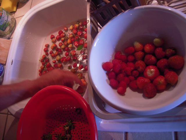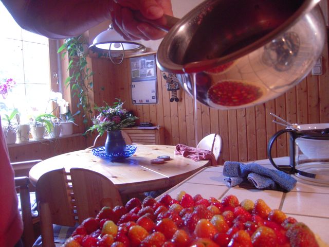 Die Erdbeeren sind geerntet, gerade ausreichend für eine leckere Torte. Das Rezept für den Biskuitboden habe ich von meiner Uroma übernommen, gelingt immer und wird in unserer Familie favorisiert.