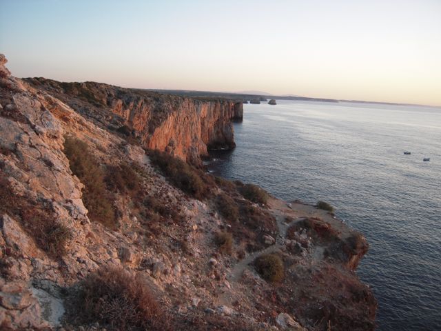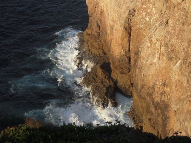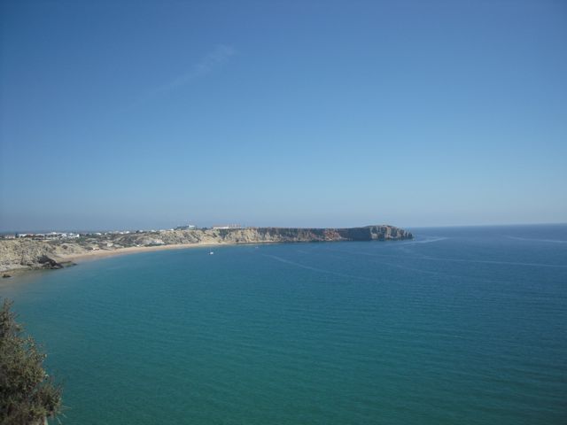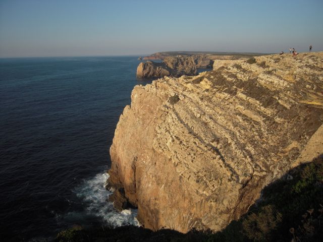 Irgendwo dahinten gerade aus liegt wahrscheinlich Afrika. Parallel zu "unserer" Landzunge ragen die Landspitzen mit der alten Burg … von Heinrich dem Seefahrer (der Legende nach) und die mit dem am westlichsten Punkt Europas stehenden Leuchtturm ins Meer.