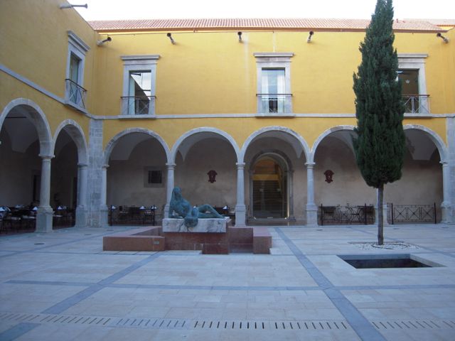 Dort liegen wir im Moment auf dem Bett in einem früheren Mönchskloster. Die Zimmer verraten nichts mehr aus dem Leben eines Mönches. Modern, gemütlich, wunderschön. Aber vielleicht irre ich mich und die Mönche hatten's ebenso. Die meterdicken Wände lassen nicht den geringsten Laut hindurch, ebenso wenig funktioniert der Handyempfang. Wir wollten ja nur die Ankunft mitteilen. Das Gebäude ist sonst gut erhalten und nur wenig umfunktioniert. Im Mönchshof, unter dem Kreuzgang bekommen wir das köstliche Frühstück serviert.