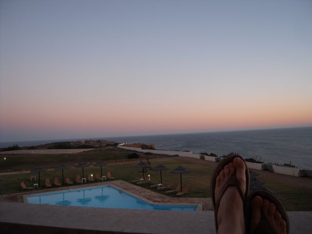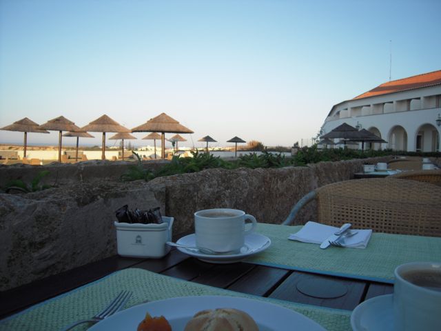 Auch Sagres liegt direkt am Meer und die Halbinsel auf der unser Hotel steht ragt mit der äußersten Spitze ins Meer hinaus. Vom Balkon aus sehen wir Meer und blauen Himmel, so weit das Auge reicht.