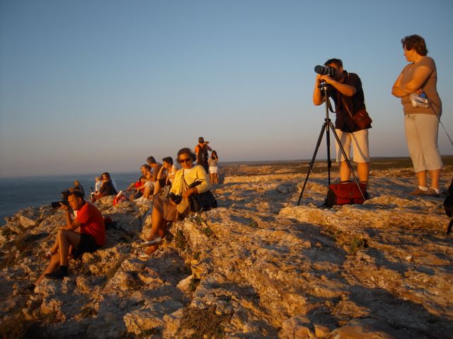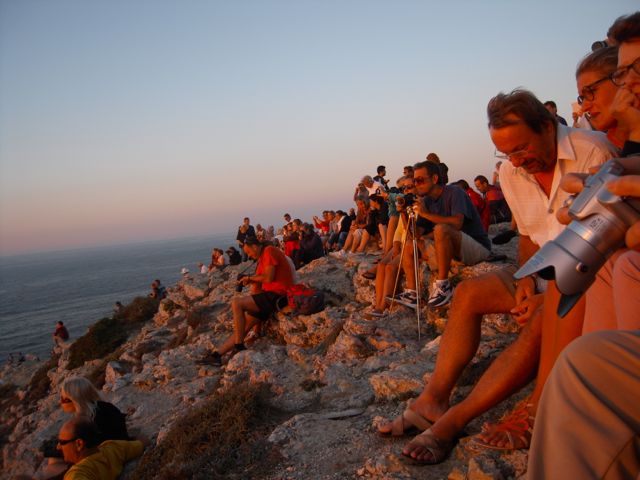 Vor uns waren bereits viele Schaulustige angekommen und saßen auf den Klippen mit ihren Fotoapparaten. Kurz bevor die Sonne ins Wasser eintauchte, haben Busse weitere Touristen vorbeigebracht. Pärchen stießen mit Wein auf diesen romantischen Moment an. …. Klicklickklick ….
